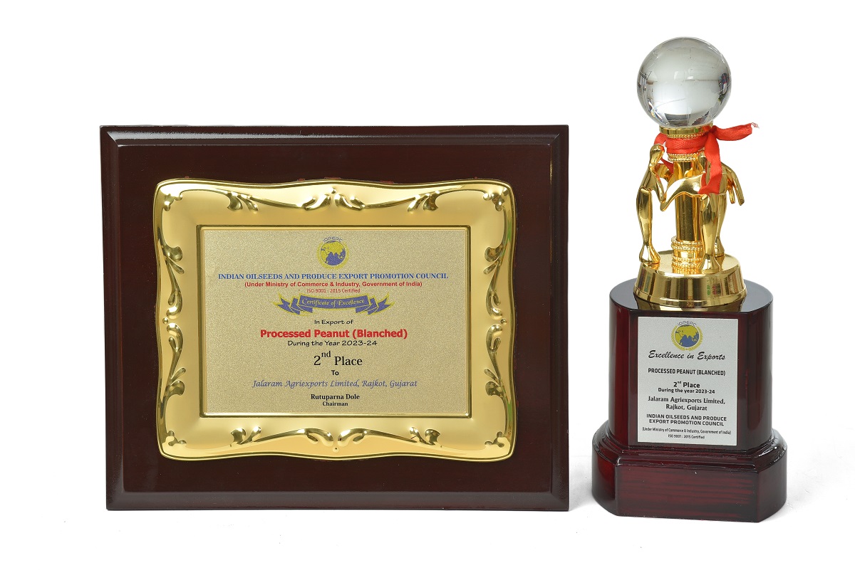 Awarded 2nd Highest Exporter For The Year 2023-24 Of Blanched Peanuts By IOPEPC Council India