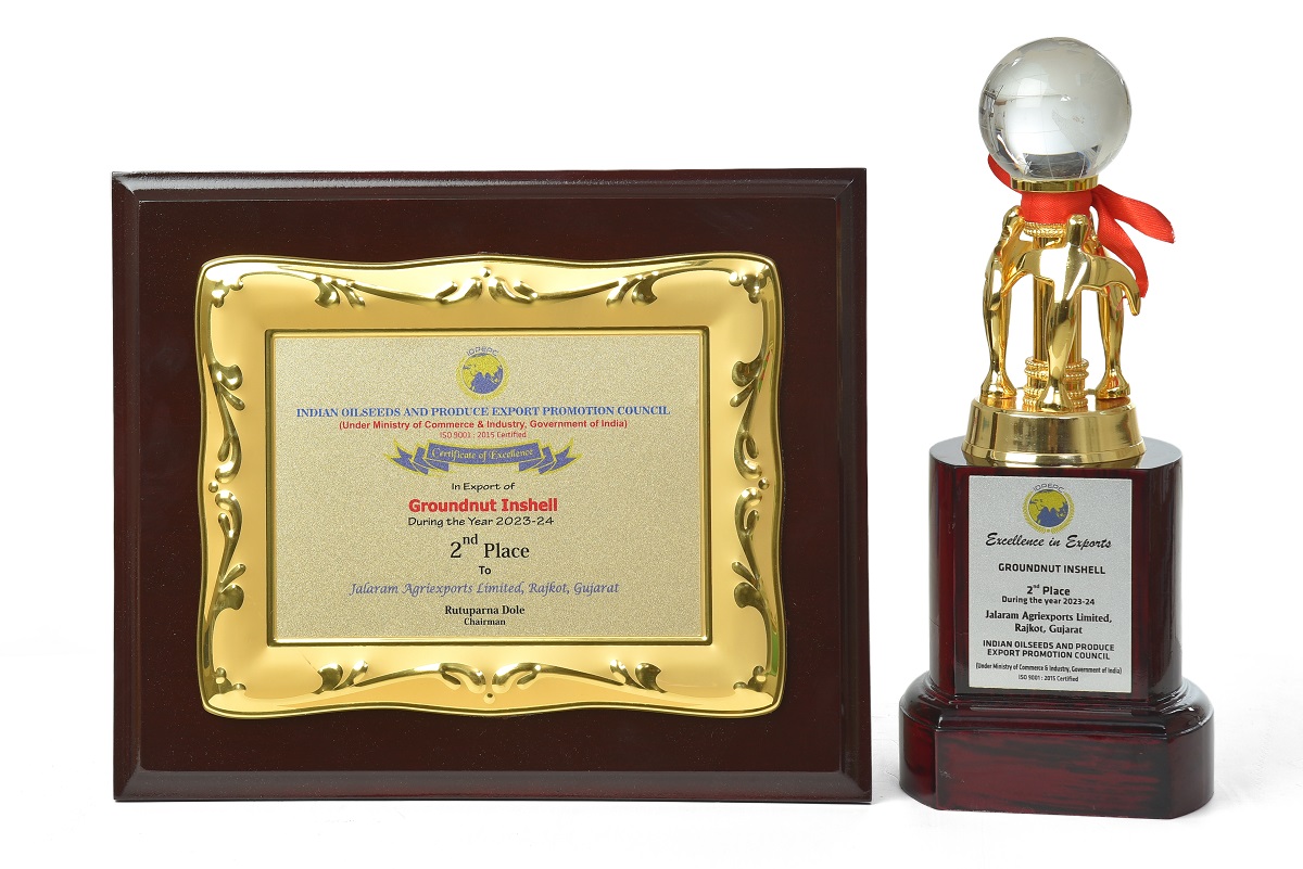 Awarded 2nd Highest Exporter For The Year 2023-24 Of Groundnut Inshell By IOPEPC Council India