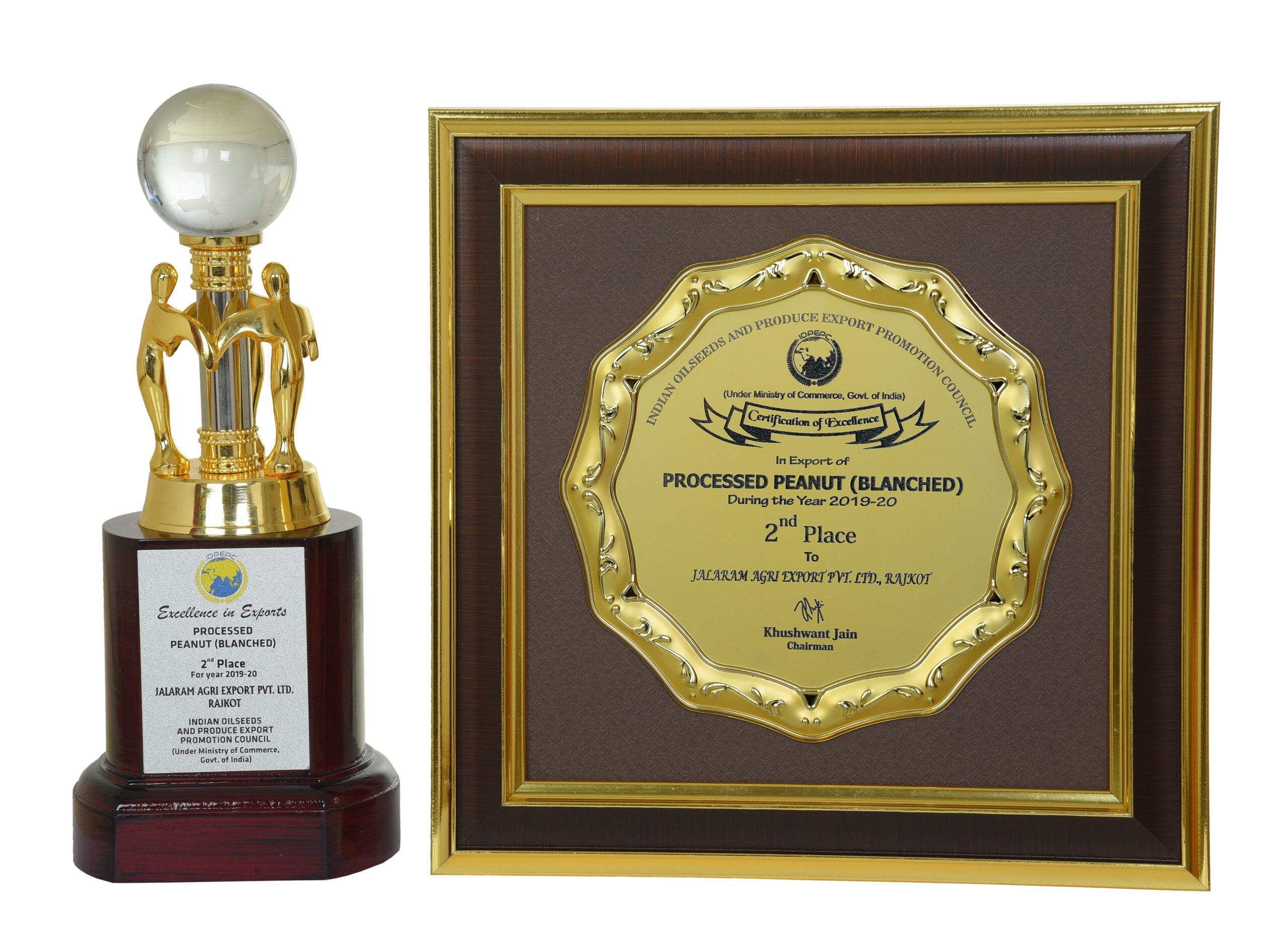 Awarded 2nd Highest Exporter For The Year 2019-20 Of Blanched Peanuts By IOPEPC Council India