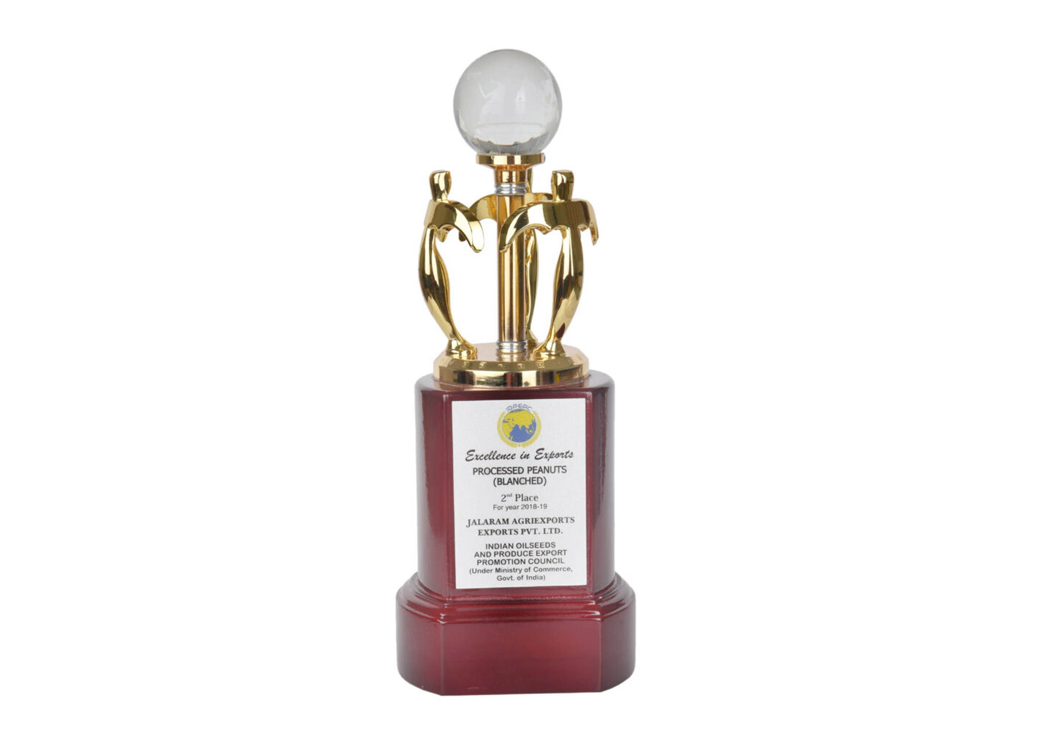 Awarded 2nd Highest Exporter For The Year 2018-19 Of Blanched Peanuts By IOPEPC Council India