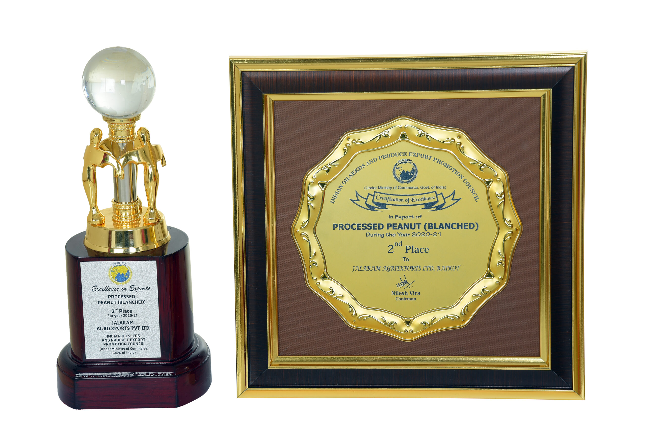 Awarded 2nd Highest Exporter For The Year 2020-21 Of Blanched Peanuts By IOPEPC Council India