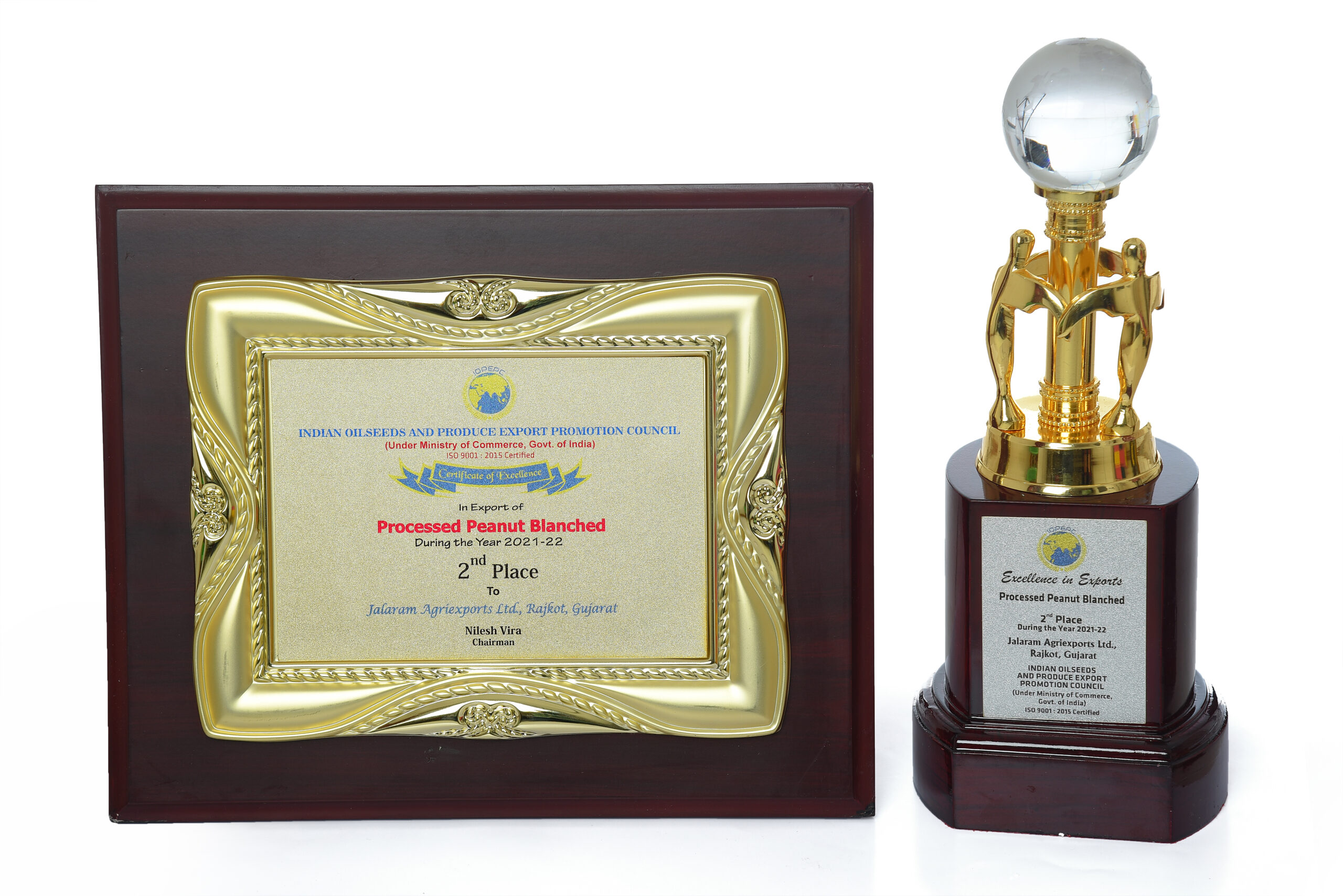 Awarded 2nd Highest Exporter For The Year 2021-22 Of Blanched Peanuts By IOPEPC Council India