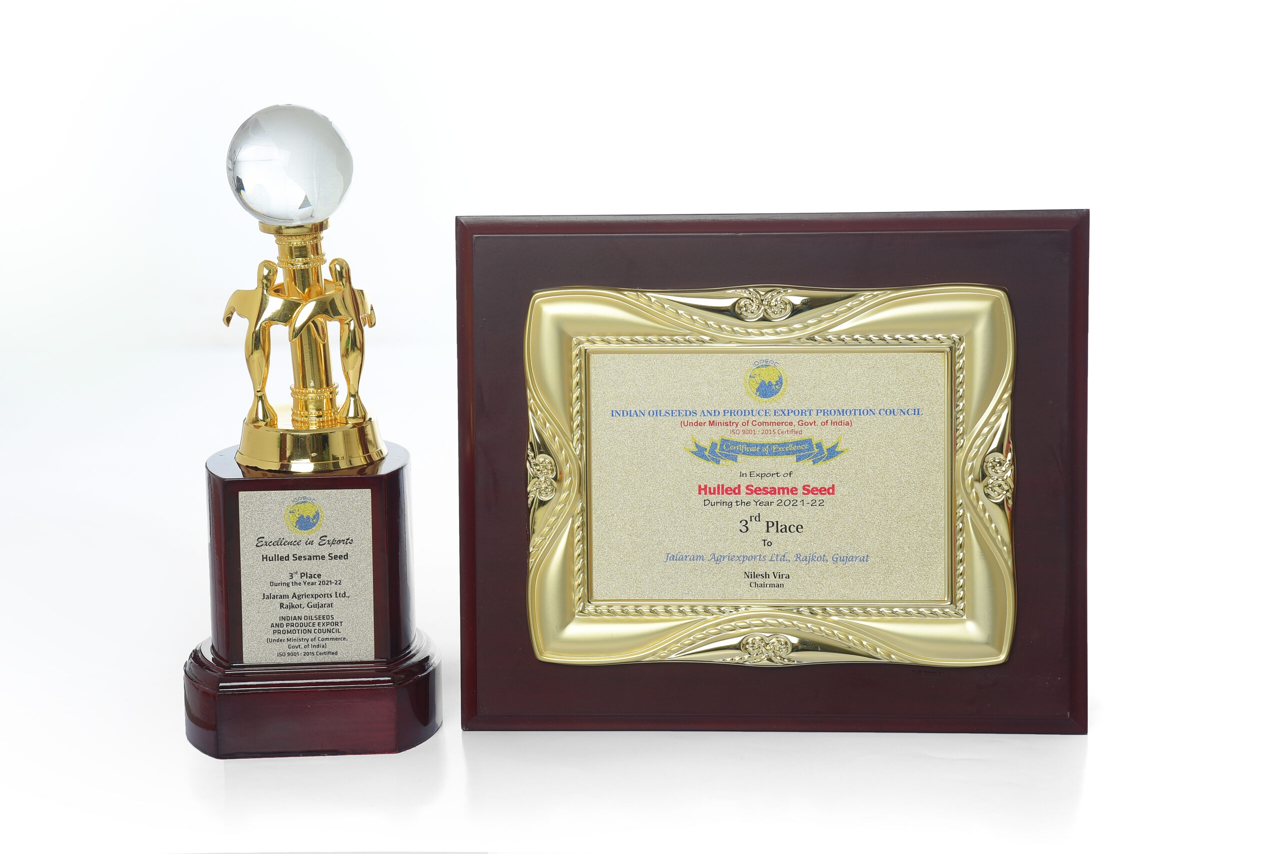 Awarded 3rd Highest Exporter For The Year 2021-22 Of Hulled Sesame Seed By IOPEPC Council India