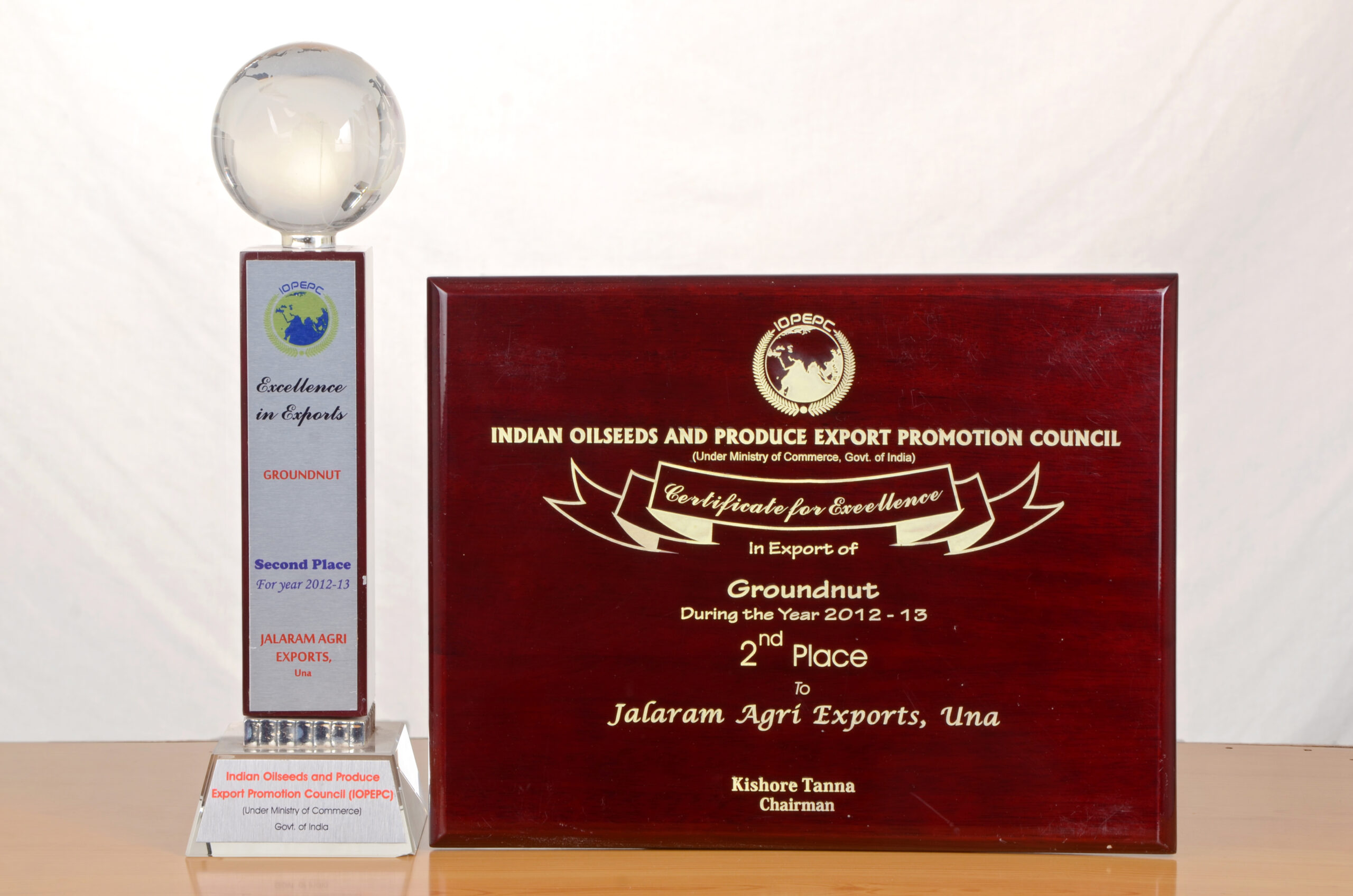 Awarded 2nd Highest Exporter For The Year 2012-13 Of Raw Peanuts By IOPEPC Council India.