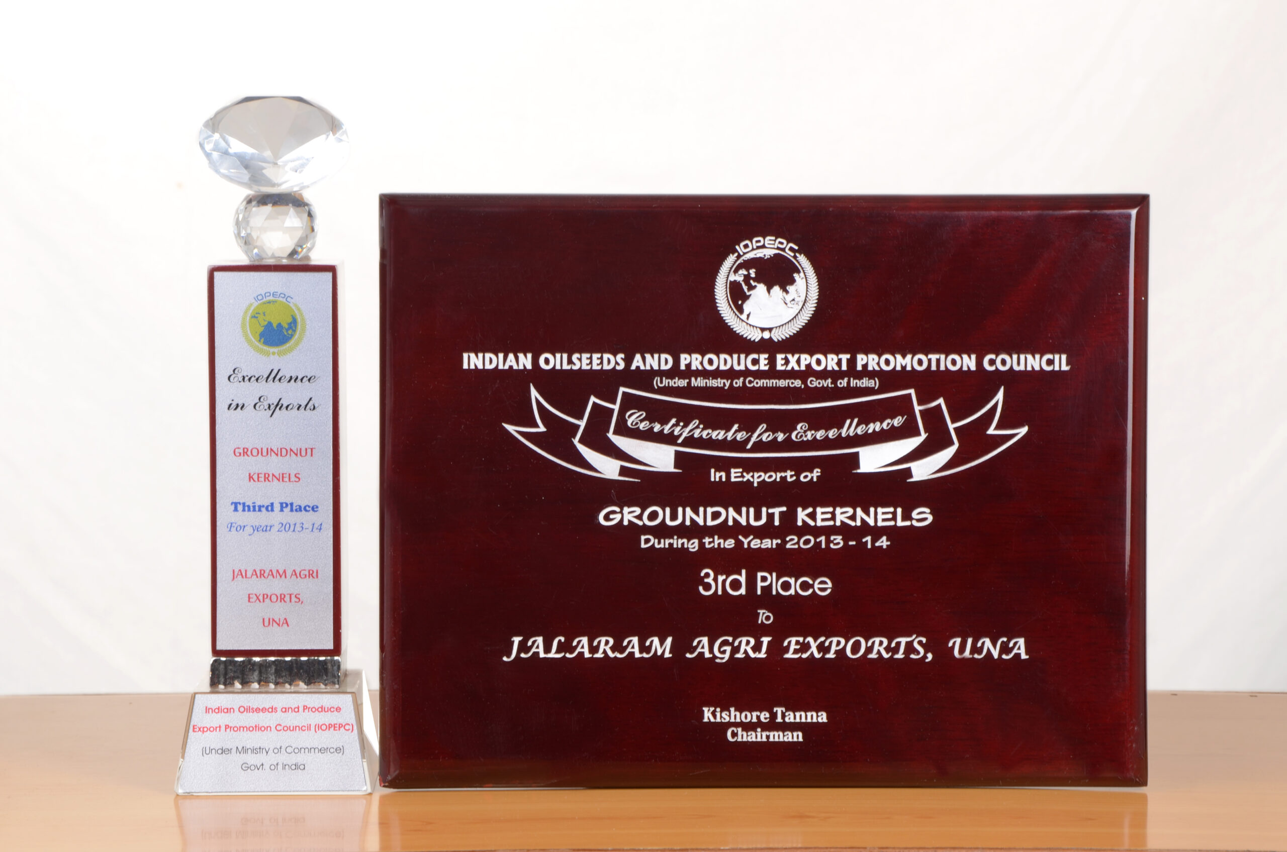 Awarded 3rd Highest Exporter For The Year 2013-14 Of Blanch Peanuts By IOPEPC Council India.
