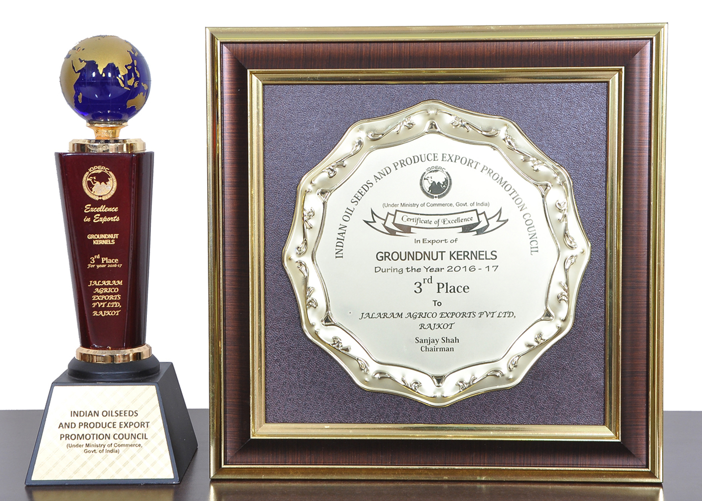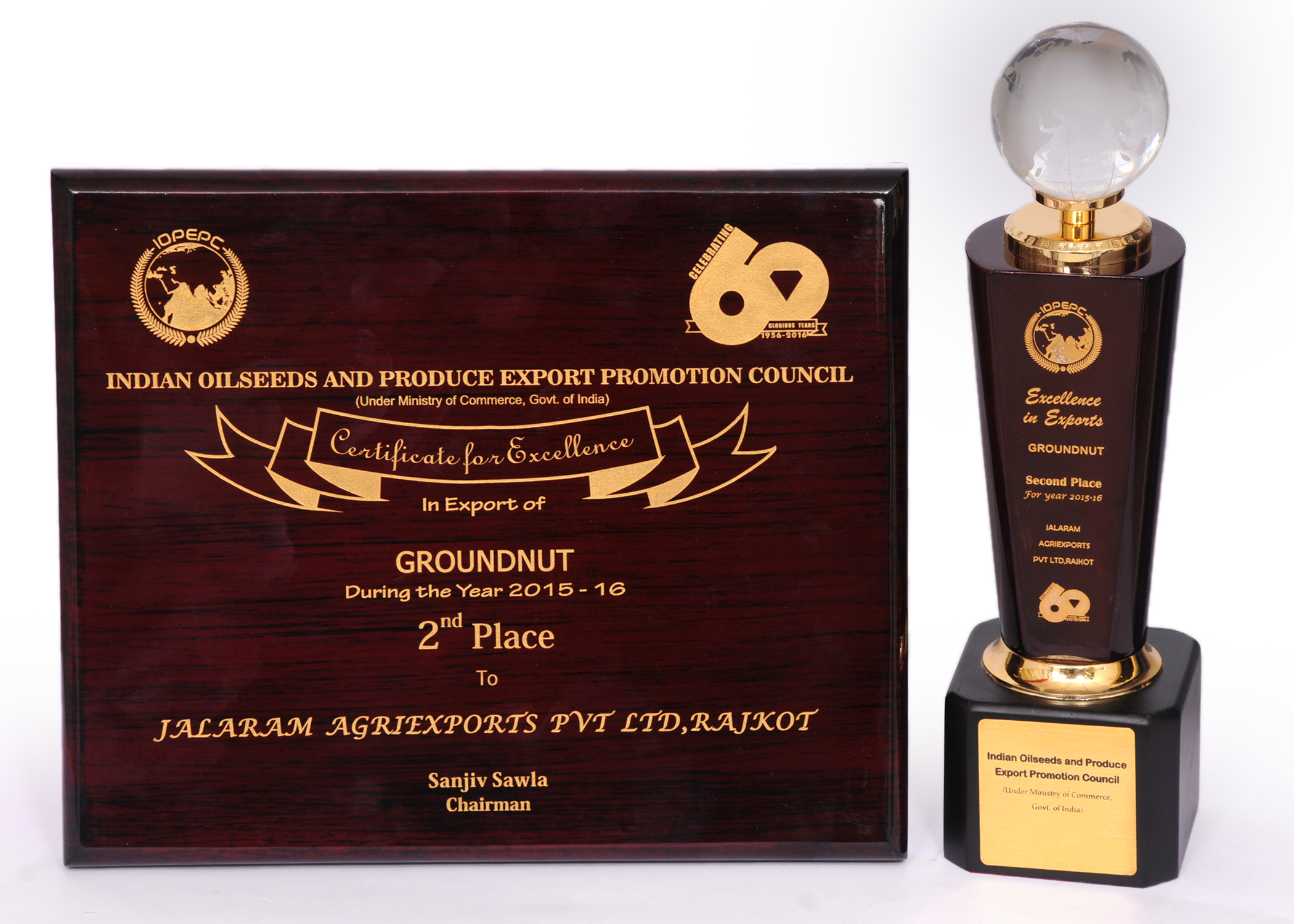 Awarded 2nd Highest Exporter For The Year 2015-16 Of Raw Peanuts By IOPEPC Council India.