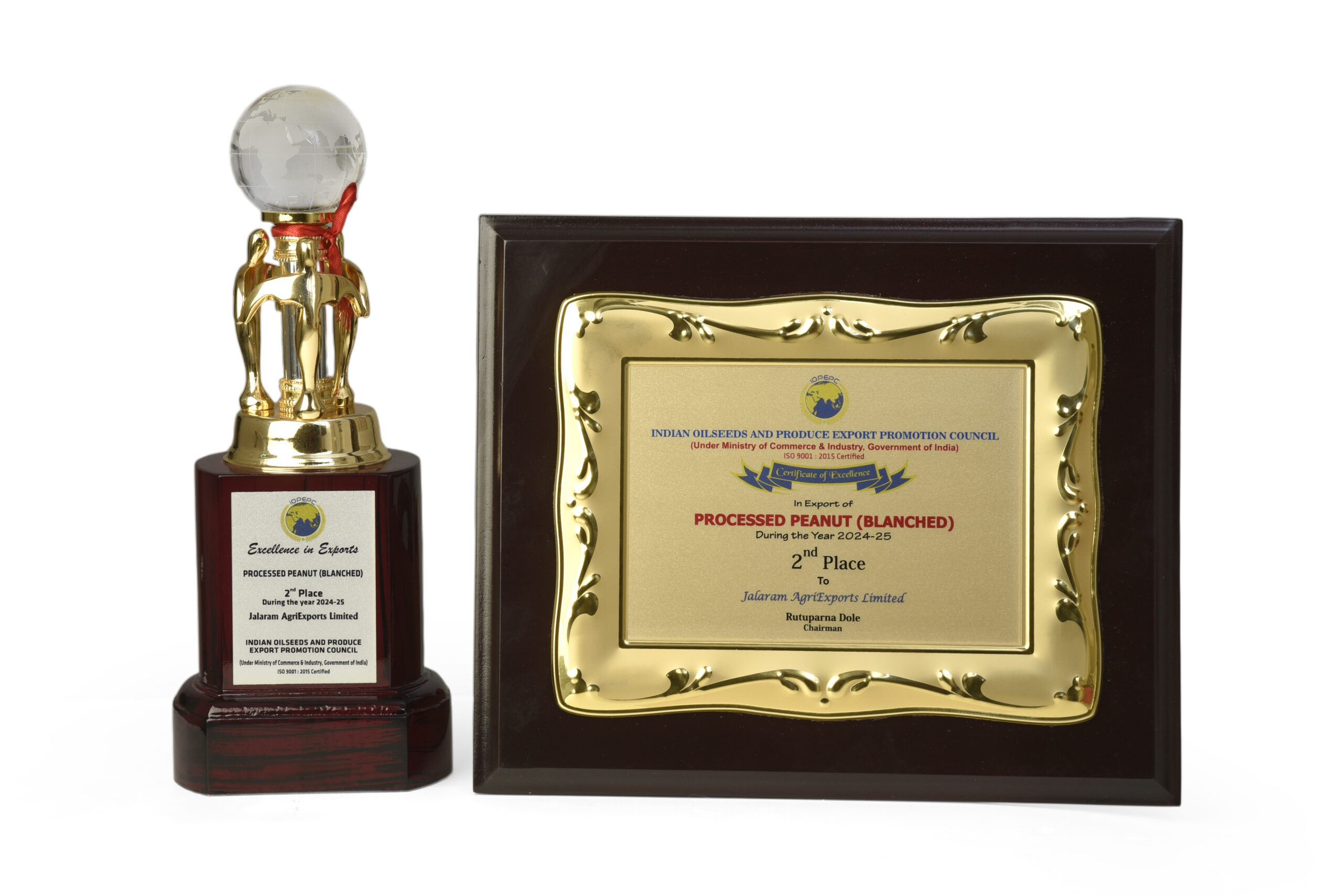 Awarded 2nd Highest Exporter For The Year 2024-25 Of Blanched Peanuts By IOPEPC Council India