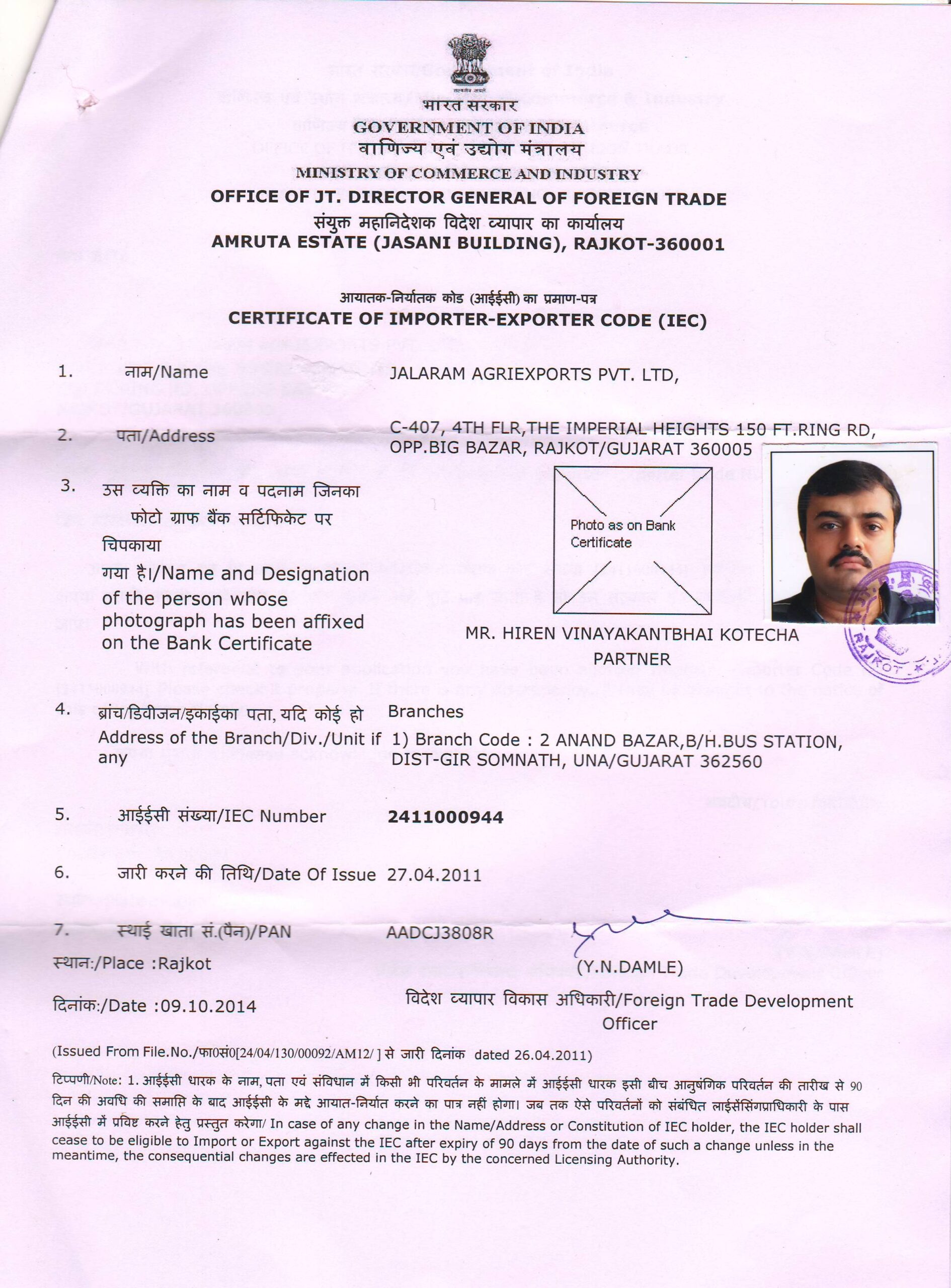 (DGFT) - Registered Member